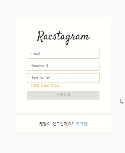 인스타그램에서는 자체적으로 submit 버튼을 형식에 맞지 않으면 diabled로 누르지 못하게 사용자의 접근을 막아 사용자에게 validation 피드백을 주고있었습니다.