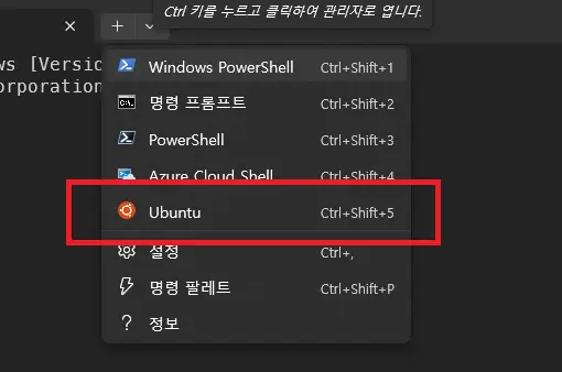 - windows terminal에서 더 보기 버튼에서 Ubuntu를 선택할 수 있습니다.