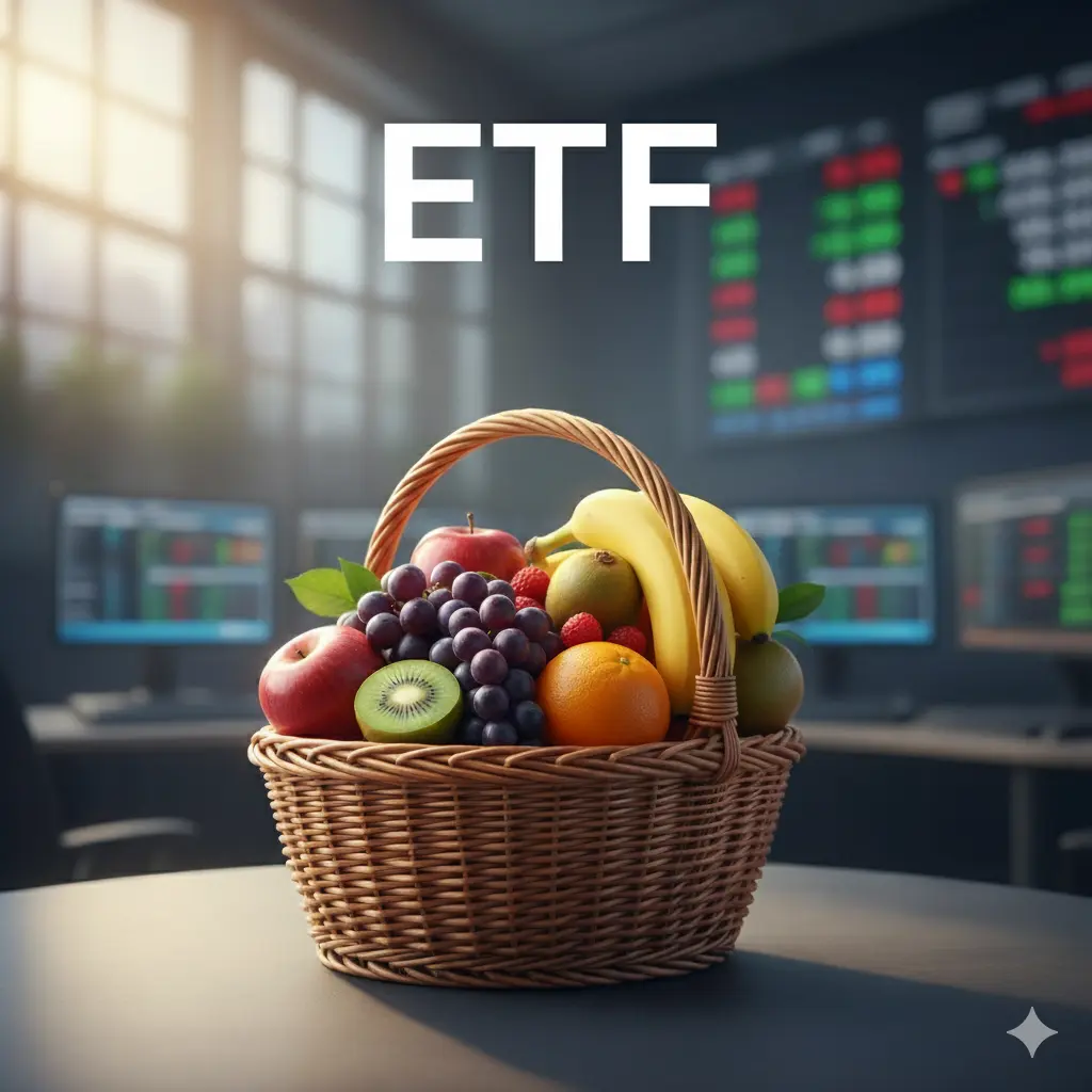 과일 가게에서 잘나가는 과일들 사과3개, 바나나2개, 포도1개, 오렌지1개 등 조금씩 잘 분배된 "과일 바구니" 를 구매하는 방식이 있지요. (ETF)