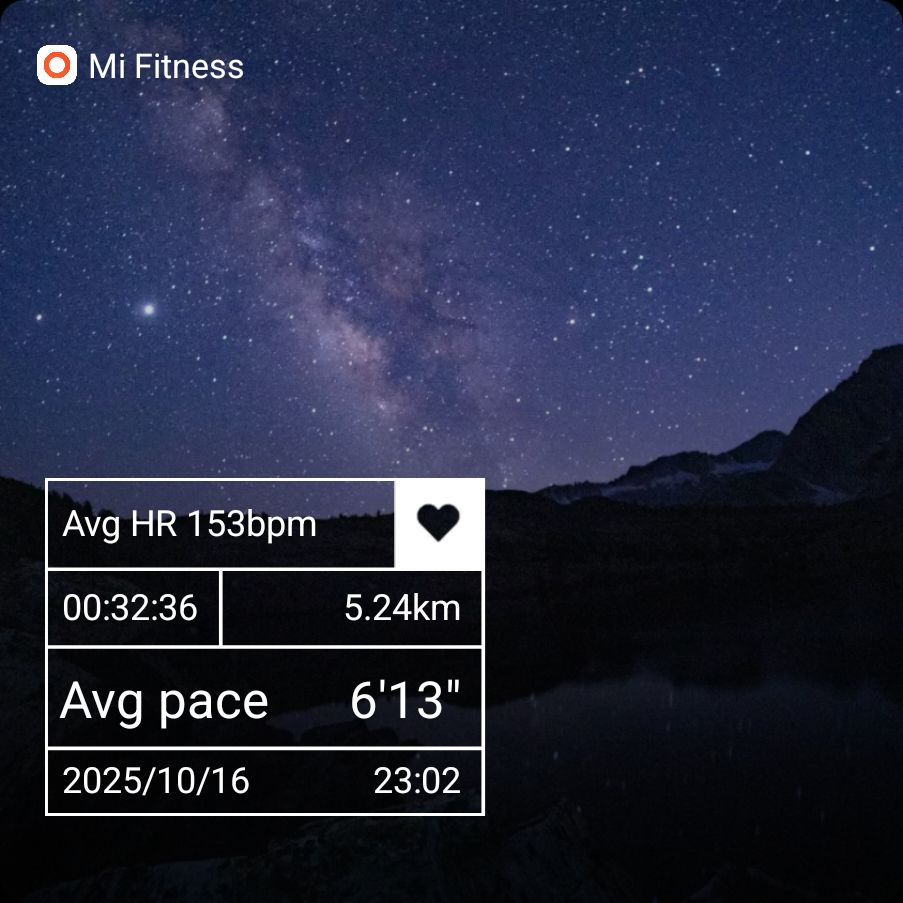 2025/10/16 - 5.24km (32:36, 6'13, 162)
