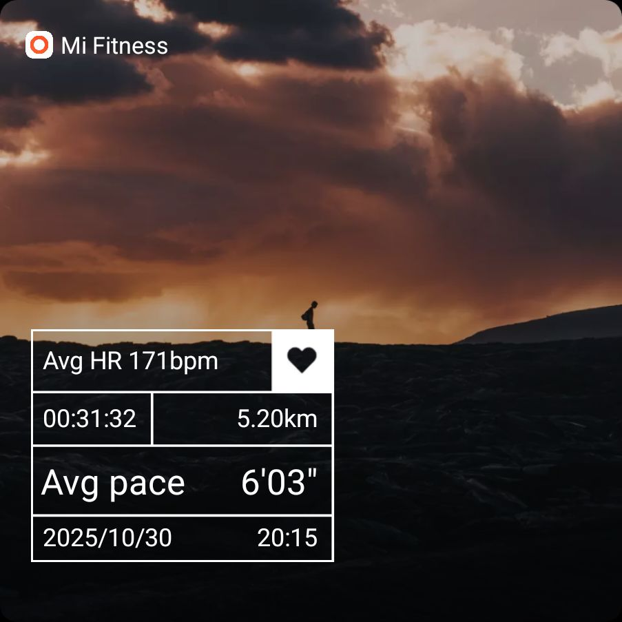 2025/10/30 - 5.20km (31:32, 6'03, 170)