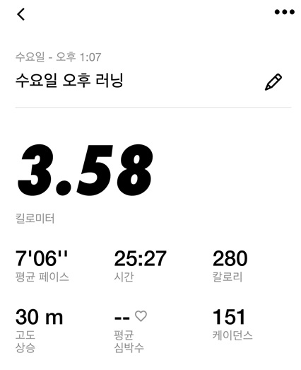 군대 있을 때 구보 마냥, 3.58 킬로미터 코스면 딱 좋은 것 같다.