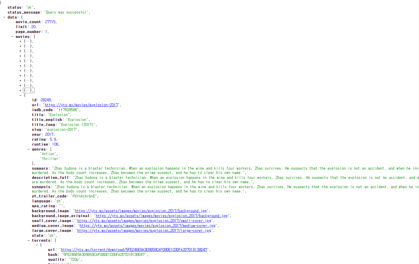 - YTS는 불법 다운로드 및 토렌트 사용에 관련한 data를 API로 제공하고 있음