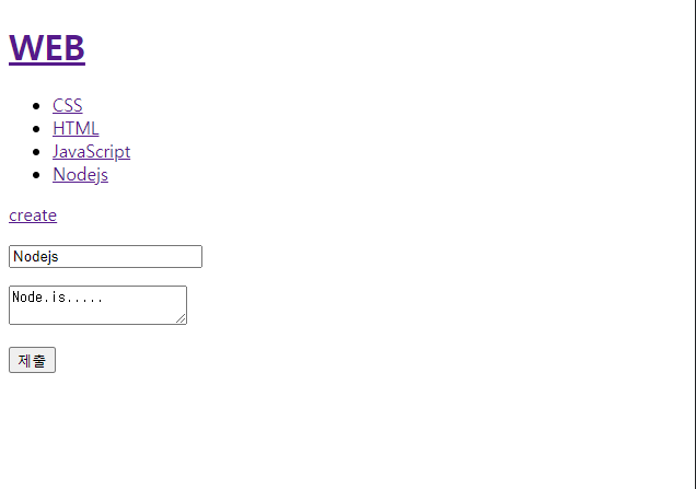 - fs.writeFile 함수를 사용해서 입력받은 title이 파일 이름이 되고 description으로 받은 값을 데이터 값으로 하는 파일을 작성한다.