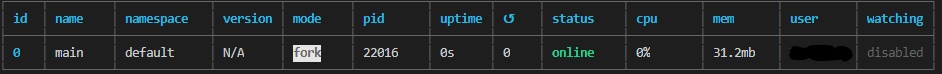 pm2 list: process list를 띄워서 현재 상태및 정보들을 table 형식으로 보여줌