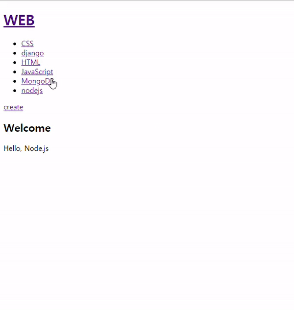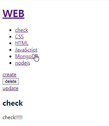 <a href="/create">create</a> <a href="/update?id=${title}">update</a>를 줌 - queryString에 어디에 update를 하는지 알려줘야 해서 id값으로 넣어 줌