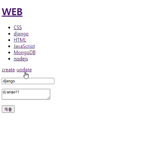 <a href="/create">create</a>만 있고 update는 없음