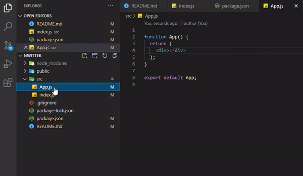 src폴더 안에components폴더,routes만들기 -> component 폴더안에App.js파일 옮기기 (index.js에 import path 수정할 것 물론, 옮길때 뜨는 알림에 yes하면 저절로 바뀜)routes에