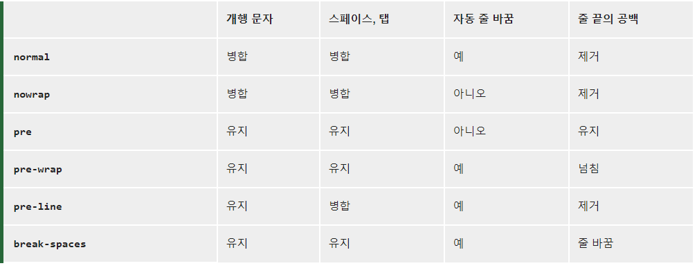- CSS에서 개행을 처리하는 property인